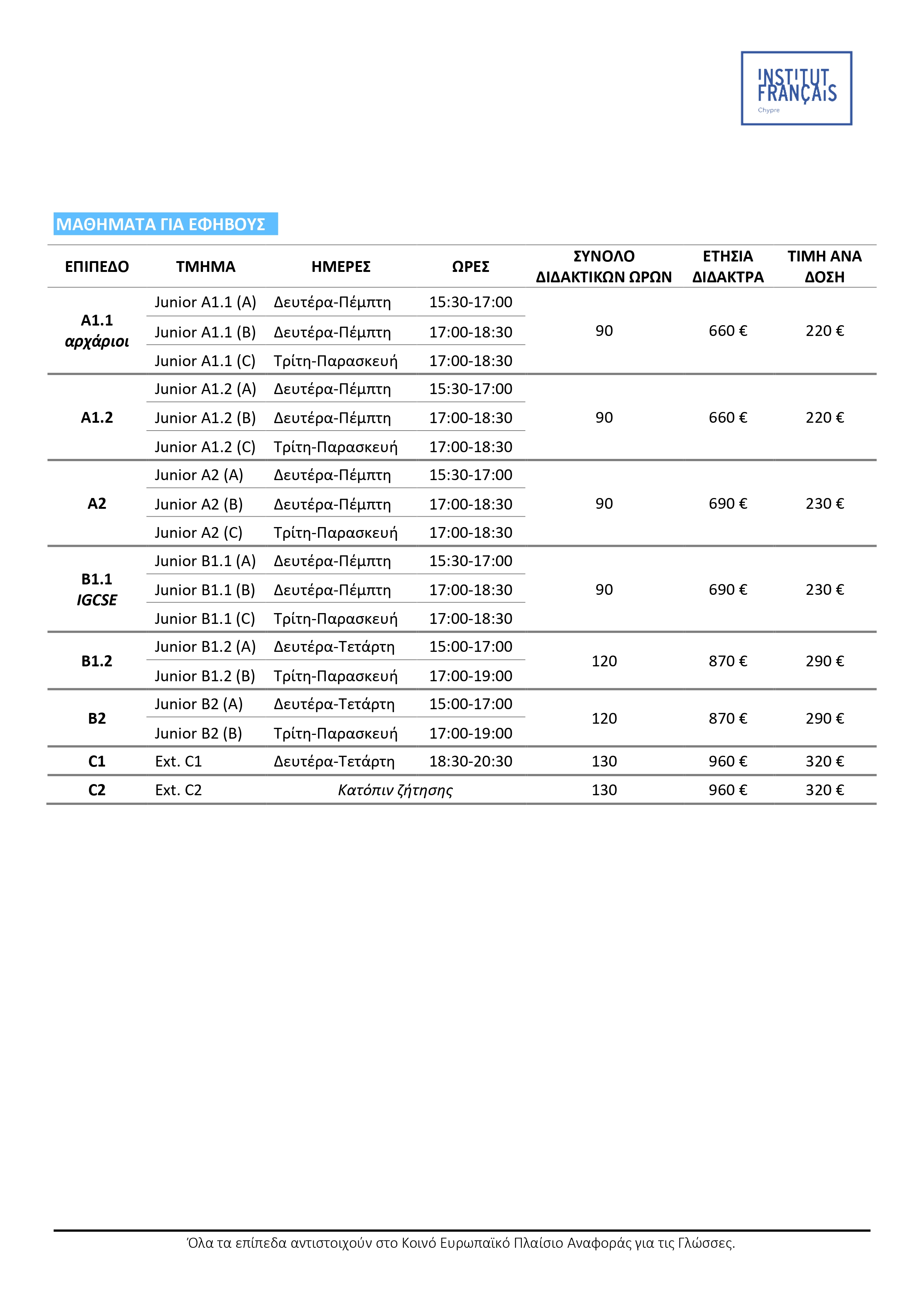 Μαθήματα Γαλλικών 2023-2024 - Έφηβοι ΕΤΗΣΙΑ ΜΑΘΗΜΑΤΑ 2024-2025 Cours d'été en présentiel pour adolescents (11-18 ans)