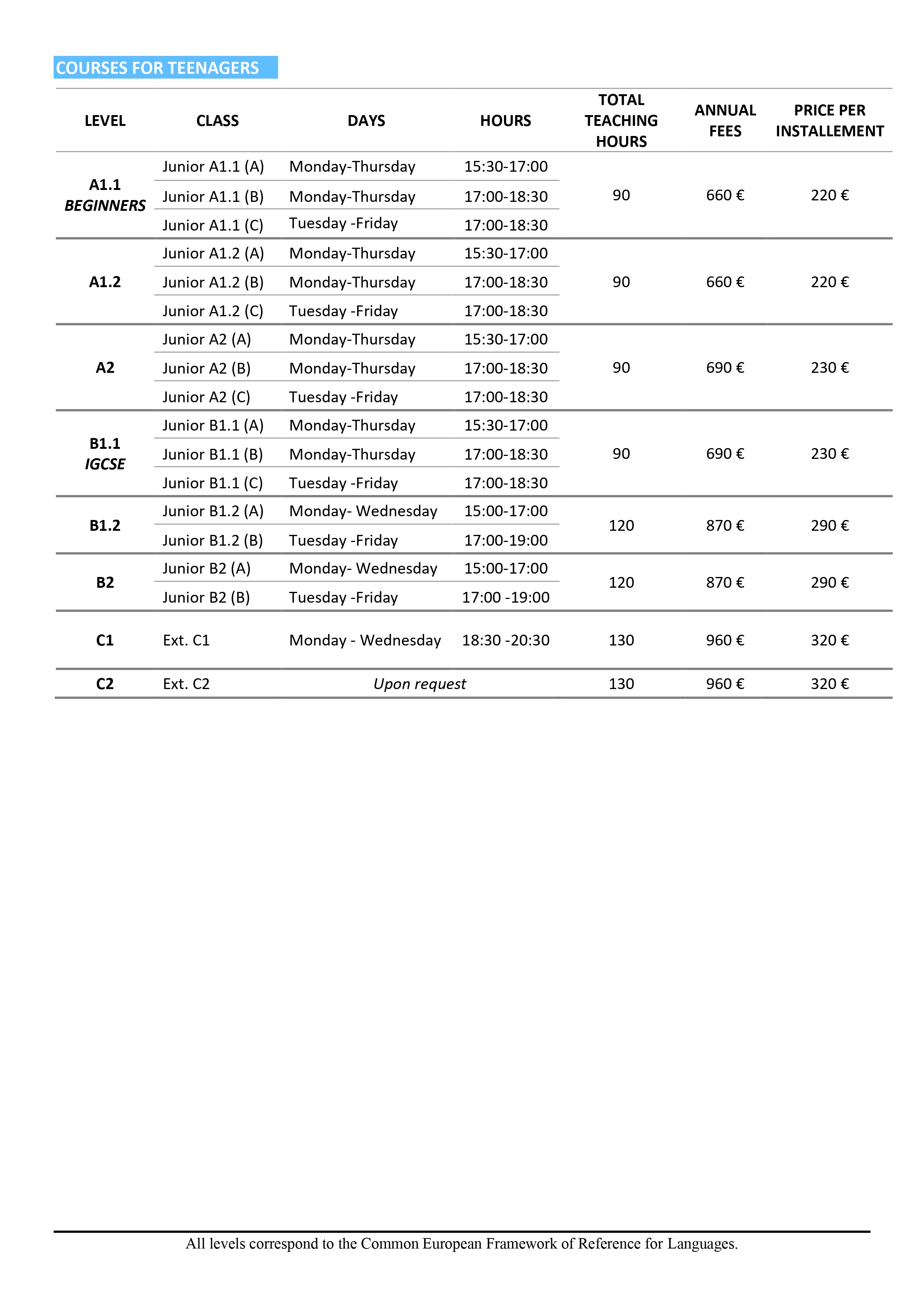 Annual Courses - 2023 - 2024 - Teenagers FRENCH COURSES 2024-2025 Face-to-face summer courses for teenagers (11-18 years old)