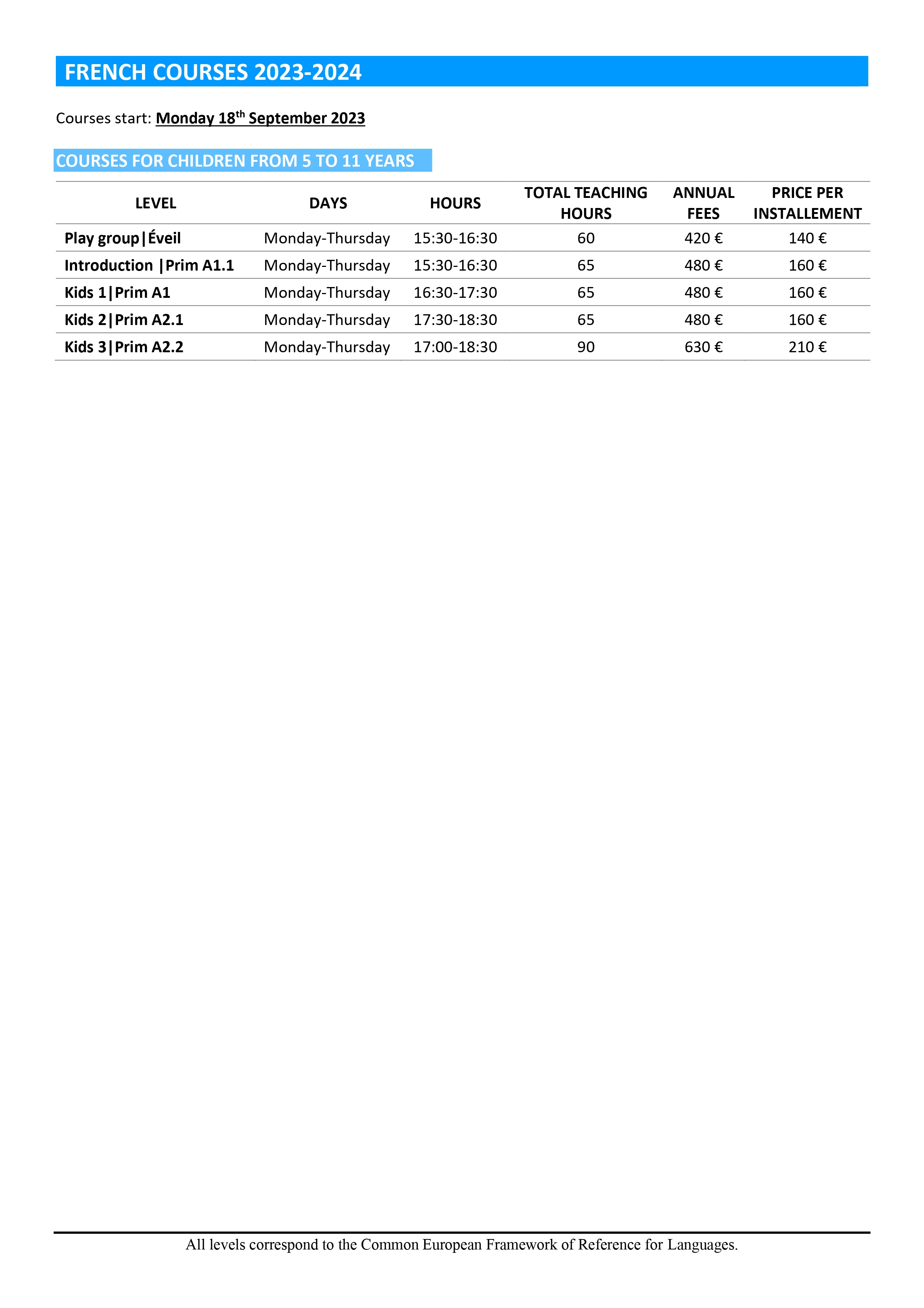 Annual Courses - 2023 - 2024 - Children FRENCH COURSES FOR CHILDREN 2024-2025 Face-to-face courses for children (7-10 years old)